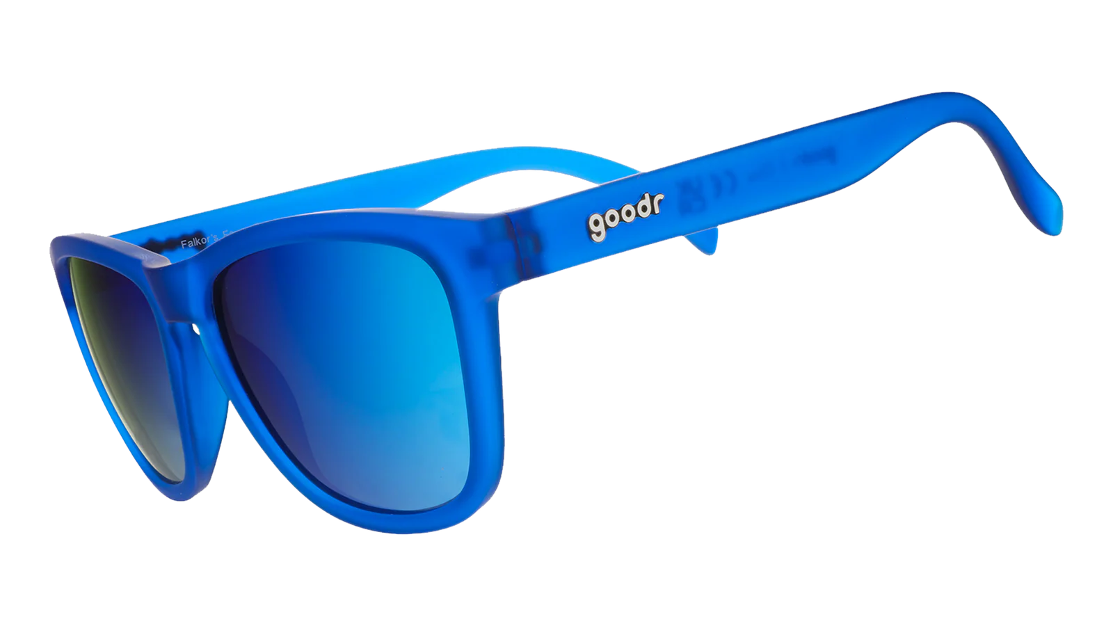 These blue-on-blue sunglasses are what fever dreams are made of. The no slip, no bounce frames stay put no matter how wildly you sweat, sleep walk, or travel between realms. Blue polarized lenses offer UV400 protection and reduce glare off luck dragon fur.