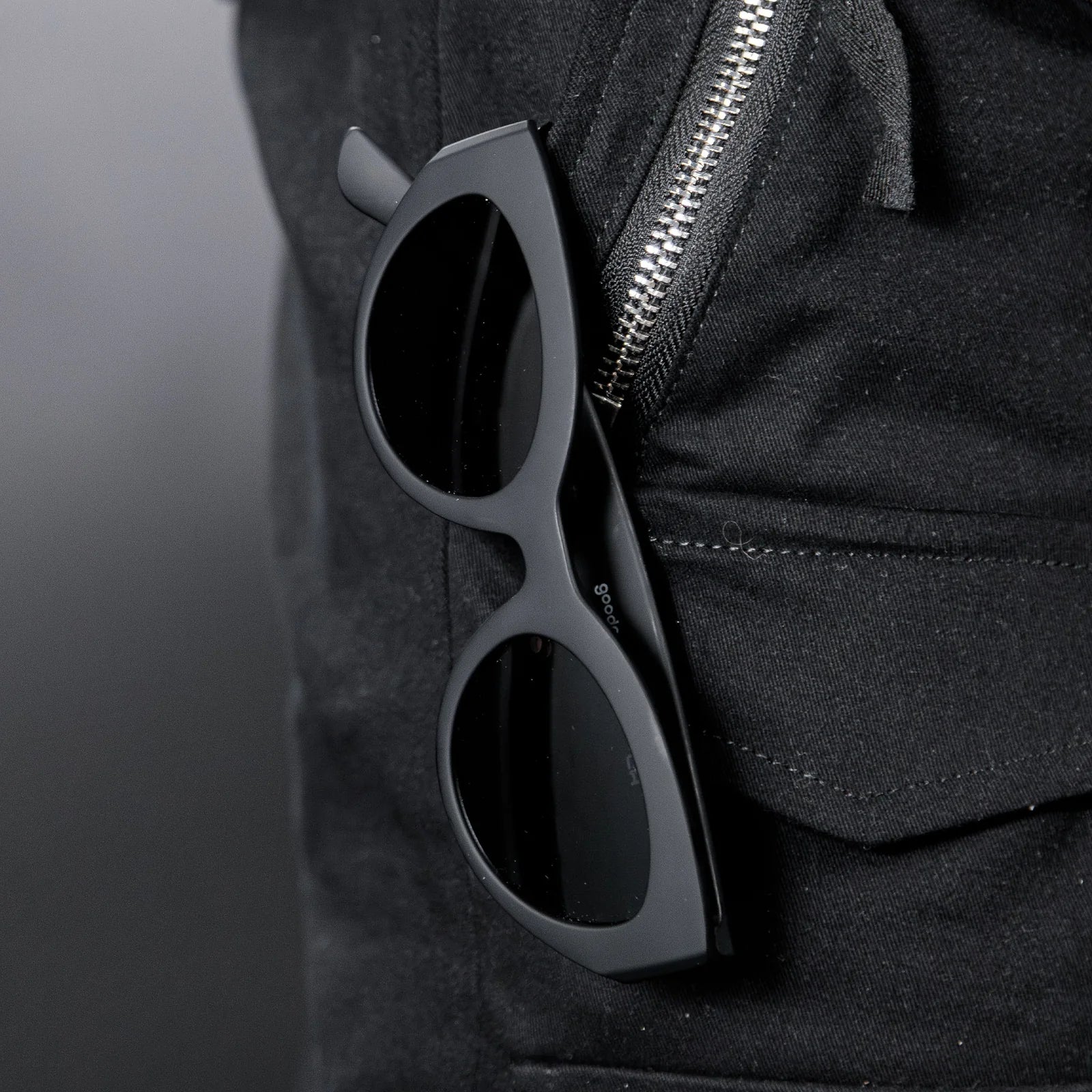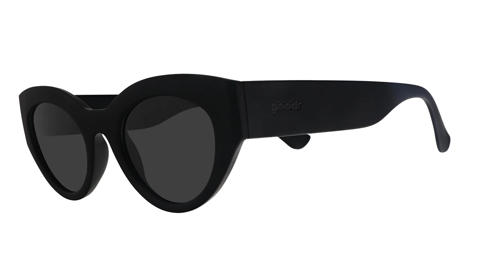 Explore the final frontier of fashion with In My Cosmic Era Moon Gs, stylish space-age sunnies with endless style. These shades have black non-reflective lenses and black frames that won’t slip or bounce– even at warp speed. (Fine, we didn’t test that, but you get it.) These chic angled cat-eye sunglasses with a retro-futuristic twist are about to be your new secret weapon.